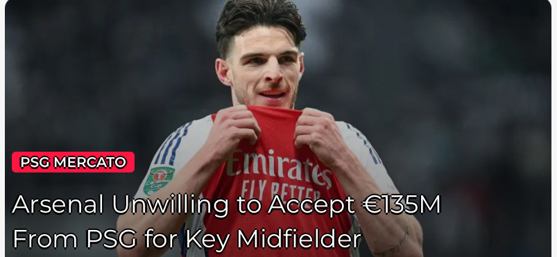 Fichajes reports that PSG have made a strong move to secure the services of Arsenal midfielder Declan Rice, offering €135 million plus bonuses, which could bring the player closer to the French capital.